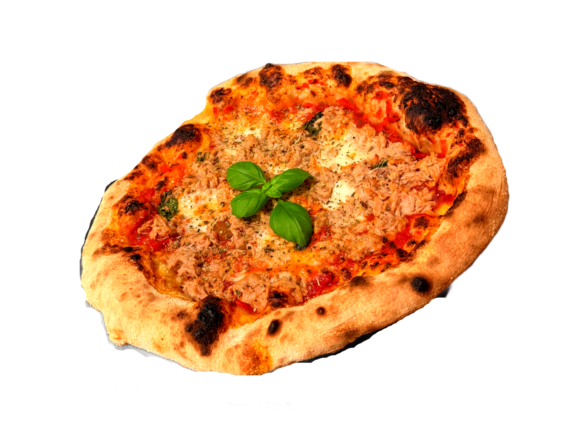 San Marzano tomatsås, mozzarella di Bufala, tonfisk, cayene peppar, basilika